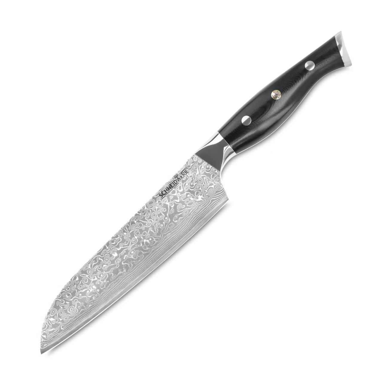 Wir bieten hier hochwertige Küchenmesser aus 67 Lagen Edelstahldamast mit einer Schneidlage eines für uns hergestellten Schneidwerk-V100 Stahls.